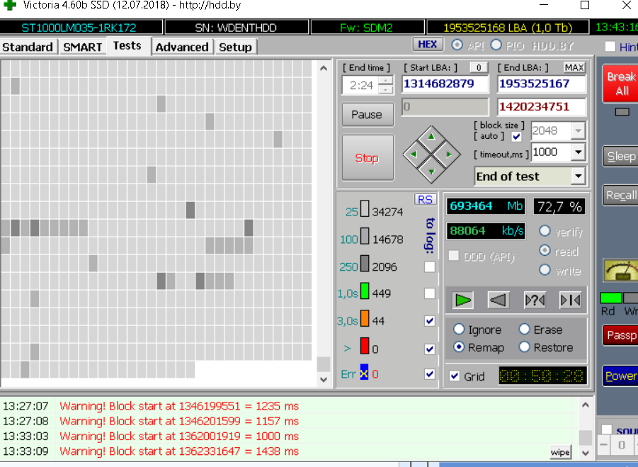 Значит и медленных секторов должно быть много. Вам диск нужно менять. |