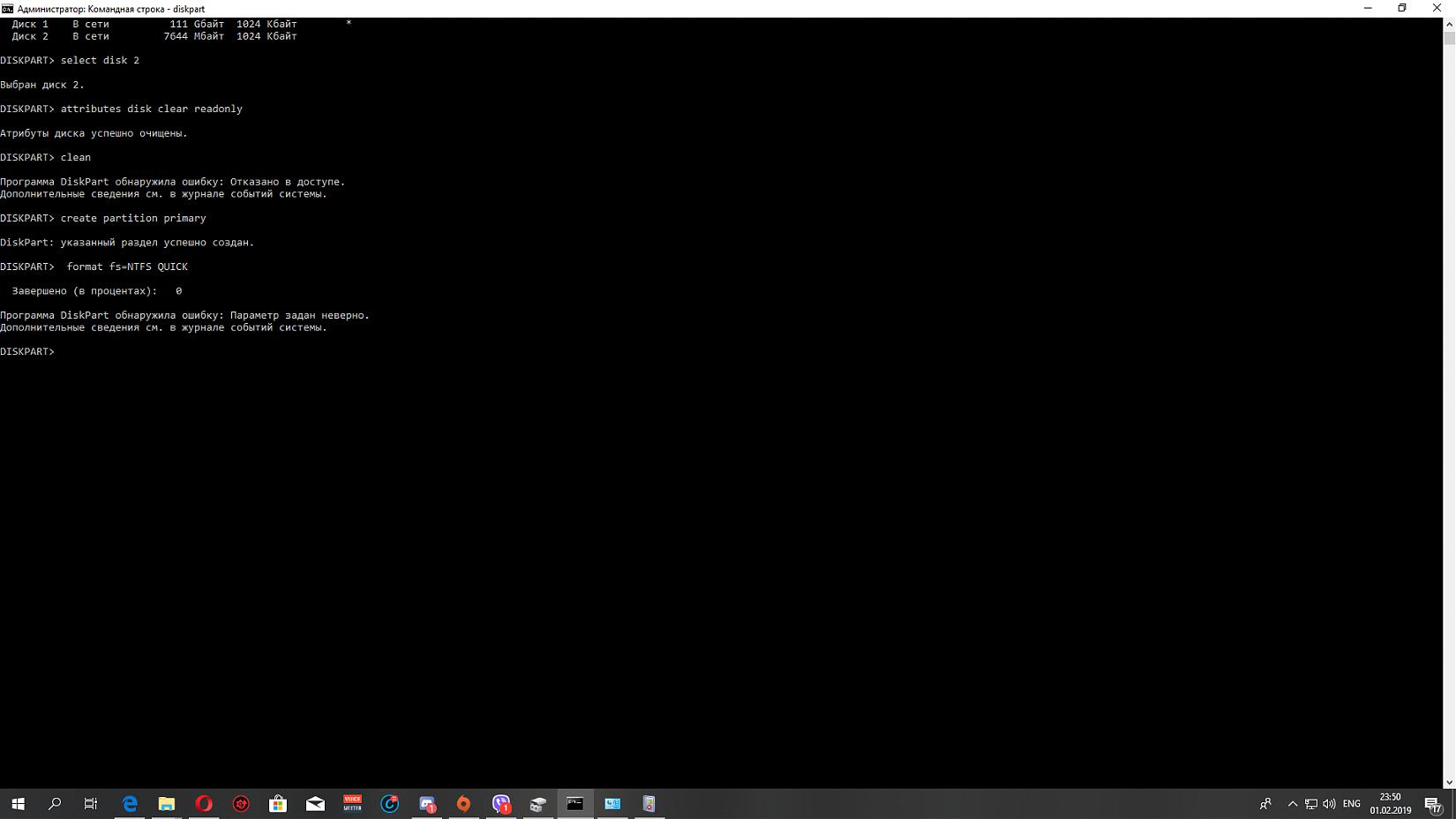 Предыстория: жила-была и не тужила флешка, которой года 4 и хранила фотки и тп и работала стабильно, до тех пор, пока я не решил создать загрузочную флешку для установки windows. При попытке форматирования(стандартно) выдало ошибку "Windows не удалось завершить форматирование'. Все, флеш стала определяться просто как USB накопитель (в свойствах файловой системы не указан даже RAW). Размер- 0 байт. В "управлении дисками" показывает размер 7.46, она исправна и формат RAW как раз таки указан. Пытался там провести форматирование (полное/частичное)- бестолку. Удалял тома, создавал заново, менял обозначение буквенное диска-толку 0. Окей, подумал, что умерла она. Взял и купил новую на 32ГБ. Вставил в usb и стал записывать образ Windows через штатную утилиту и !!! бах, ошибка записи и по-итогу картина как с 1 флешкой. Тоже возился (обычное форматирование, форматирование через управление дисками и командную строку, утилита "diskpart" ![]() p.s. !!! на стадии "clean" выдавало ошибку "отказано в доступе". Также через утилиту "HDD Low Level Format Tool' пытался делать низкоуровневое форматирование, но на начальном этапе тоже указывало на ошибку (скриншот приложу). После этого якобы успешного форматирования пытался провести уже обычное форматирование-тоже шла ошибка(невозможность форматирования) На других устройствах флешки тоже не видны. Просто Накопитель E: Приложу также скриншоты с журнала событий. Вообще понять не могу что не так. Вирусов нет, обновление ОС актуальное, флешки абы как не выдергивал и тп. |