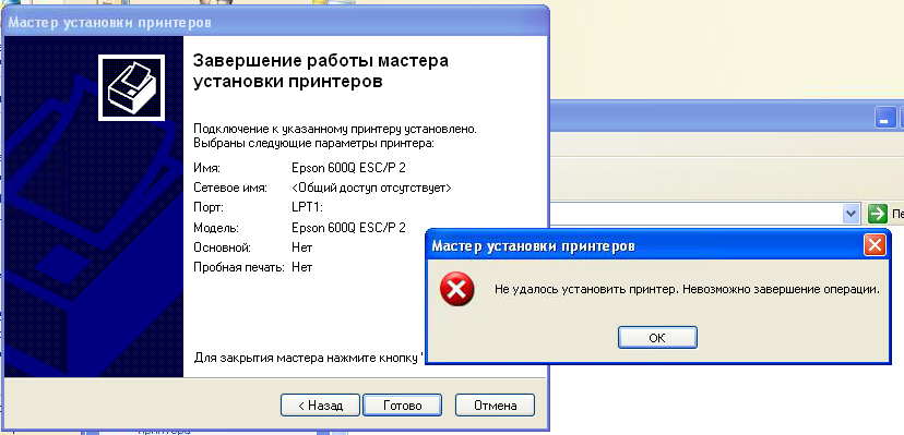 Более того, дальнейшие изыскания показали, что и установка нового принтера больше невозможна (была проведена пробная установка принтера, драйвера которого имеются в дистрибутиве windows на локальный порт lpt1). То есть драйвера копируются, но уже в самом конце опять же выдается ошибка, что завершение операции невозможно. В системном журнале - три последовательных сообщения: 1) драйвера копируются 2) принтер ожидает удаления 3) принтер удален. Скриншоты всех ошибок прилагаются. |