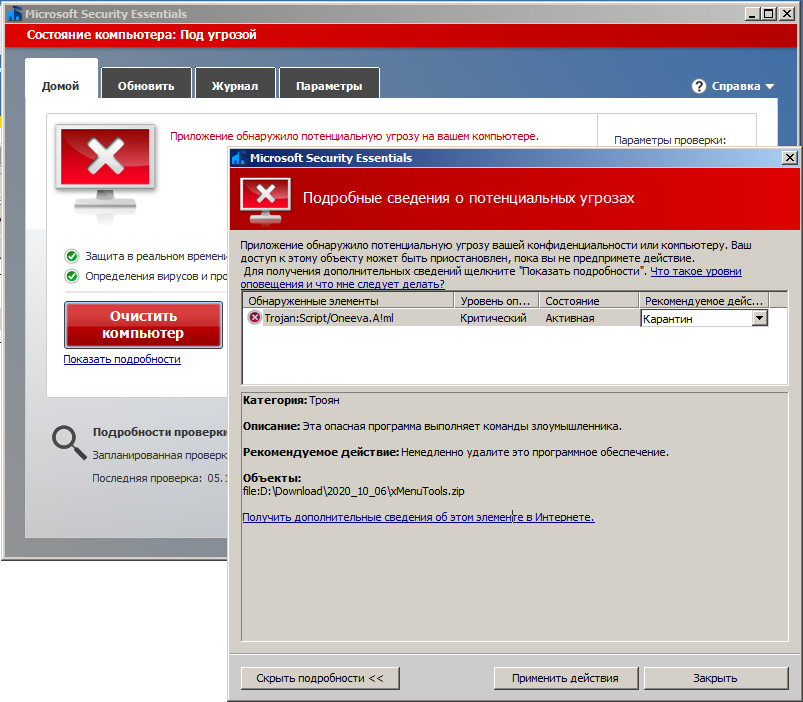 Троян Oneeva.A! Ml и антивирус от майкрософт