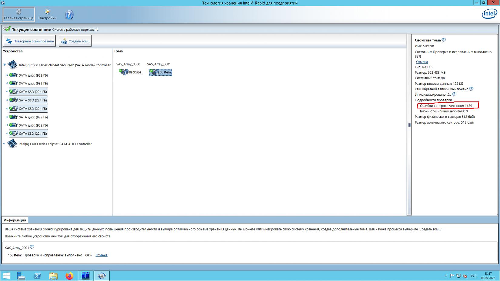 Разное - intel RAID. Ошибки контроля четности Universe Прочее железо 6 08-09-2018 08:56