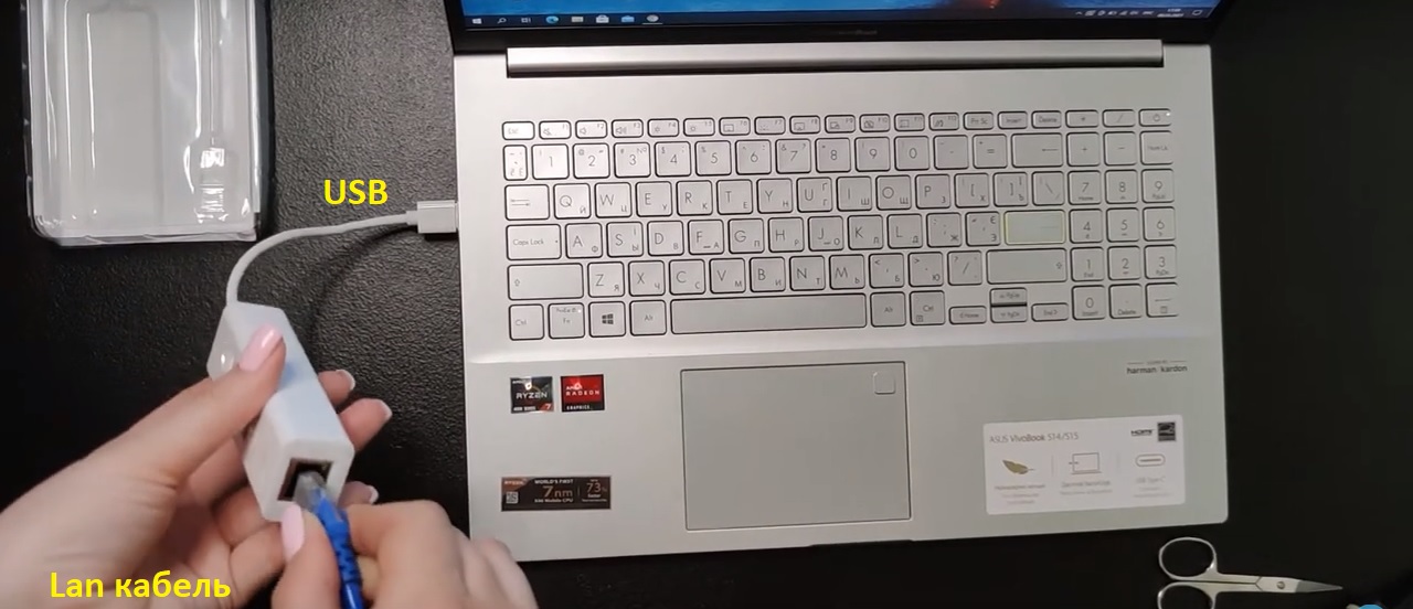 Ноутбук изначально не имеет сетевой карты, чтоб роутер подключался по LAN кабелю! В ноуте есть только Wi-Fi, но недавно мы купили внешнюю сетевую карту TP-LINK UE330 ethernet adapter,, которая подключается по usb и в неё втыкается Lan кабель от роутера. И суть проблемы такая: