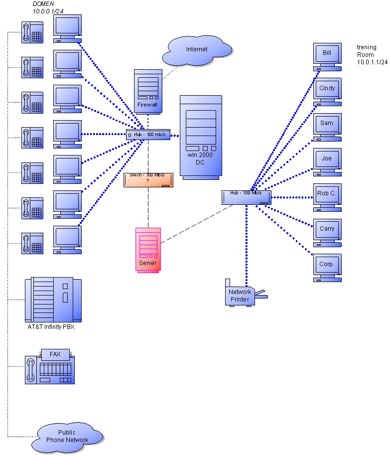 Привет. Такая вот ситуация прикрипил фаил. Значит так trening room нужно отделить от домена но нужно что бы в эту комнату на "Server" приходил интернет (80 81 21 110) так что бы эта комната ни при каких условиях не видела сеть DOMINE и не могла зайти на неё. Это пол беды (достаточно простой) Вот меня инетересут оранжевый свич или еще что либо его роль очень мне важна. На машине SERVER будет 2 сетевые карты первая в свич общий, вторая в свич в комнату обучения. Так вот нужно сделать так что бы при изменении ip адреса на машине "Server" этот оранжевый свич или другое оборудование блокировало все пакеты на этот "SERVER" |