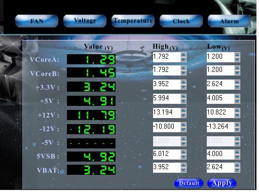 +3,3 - 3,17 - 3,18 +5,0 - 4,96 - 4,98 +12,0 - 11,73 CPU - 54-55 град при простое и включеном QFan, до 71 при нагрузке и включенном QFan MB - 40 град стабильно вроде Вопрос - нормально? Мать ASUS M2NPV-VM CPU: Socket AM2, AMD Athlon 64 X2 Dual Core Processor 400+, 1,3V, External Clock 210MHz(слегка разогнан), Текущая частота 2205MHz RAM 1024 Mbytes Video - onboard |