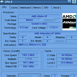 Профиль | Отправить PM | Цитировать Rinaldo, я же на писал: ядро Barton. У него кеша L2 в 2 раза больши и при том же рейтинге 2600+ он имеет частоту ниже - 1917мгц. У тебя всё верно и частоту 2.6ггц ты не мог никогда видеть на этом процессоре.