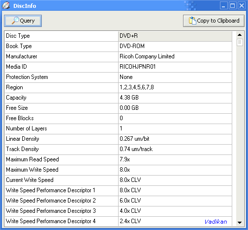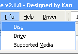Отсюда можно получить доступ к подробной информации о носителе (Disc) и приводе (Drive).