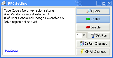 Утилита предназначена для снятия региональной защиты с привода. Вещь полезная, но не надо забывать о том, что это только первый барьер. Региональная защита также присутствует в Windows и програмных DVD проигрывателях типа PowerDVD.