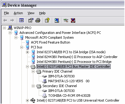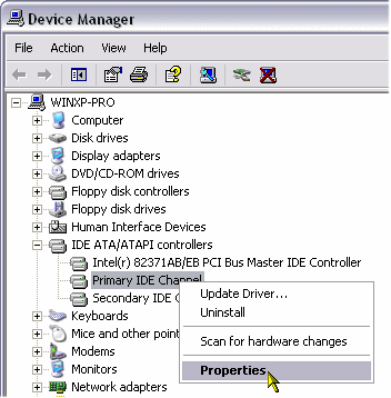 Чтобы посмотреть в каком режиме DMA работают ваши диски, вам необходимо открыть Панель Управления -> Система -> Оборудование -> Диспетчер устройств и посмотреть свойства контроллеров IDE ATA/ATAPI. Дважды кликните на контроллерах IDE ATA/ATAPI для открытия их списка, кликните правой кнопкой на записях Primary IDE Channel и Secondary IDE Channel (поочередно) и откройте пункт Свойства в появившемся меню